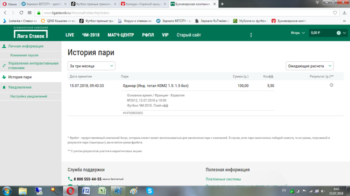 На любой матч игрового дня необходимо сделать реальную ставку на сайте www.ligastavok.ru. Скриншот этой ставки нужно разместить в комментариях к конкурсному посту игрового дня не позднее чем через час после заключения пари. Скриншот может быть принят исключительно до начала матча, на который сделана ставка.