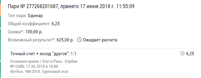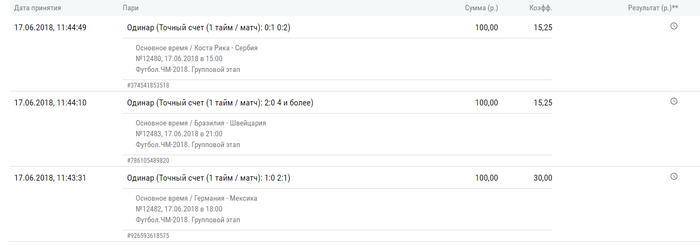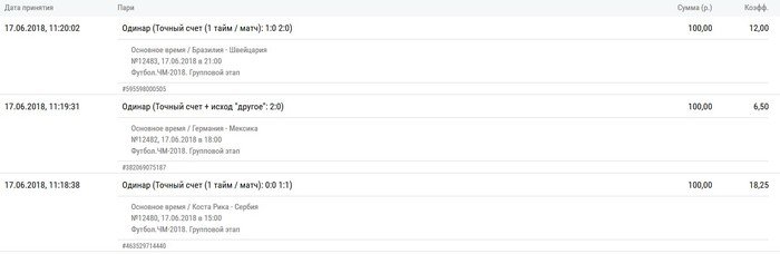 Каждый участник может делать ставку на каждый матч игрового дня, к которому он допущен. При этом на один матч можно сделать не больше одной ставки.