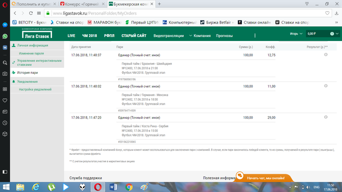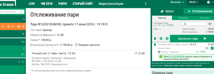 На любой матч игрового дня необходимо сделать реальную ставку на сайте www.ligastavok.ru. Скриншот этой ставки нужно разместить в комментариях к конкурсному посту игрового дня не позднее чем через час после заключения пари. Скриншот может быть принят исключительно до начала матча, на который сделана ставка.