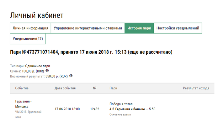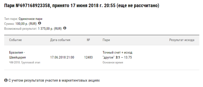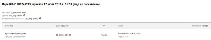 Суть конкурса довольно проста: до начала выбранного матча чемпионата мира участники делают реальную ставку на этот матч и оставляют скриншот этой ставки в комментариях к посту текущего игрового дня. По завершении игрового дня победителем признается участник, сделавший выигрышную ставку с самым высоким коэффициентом.