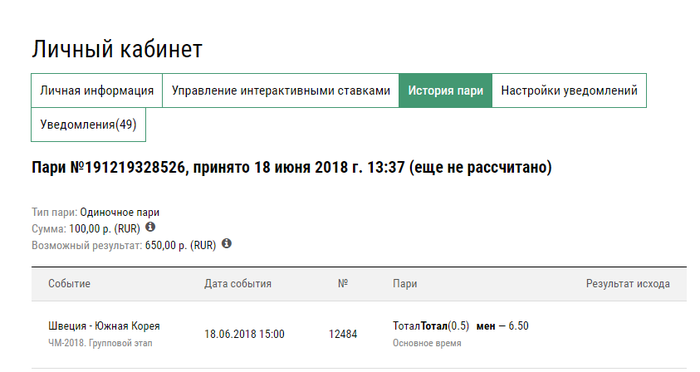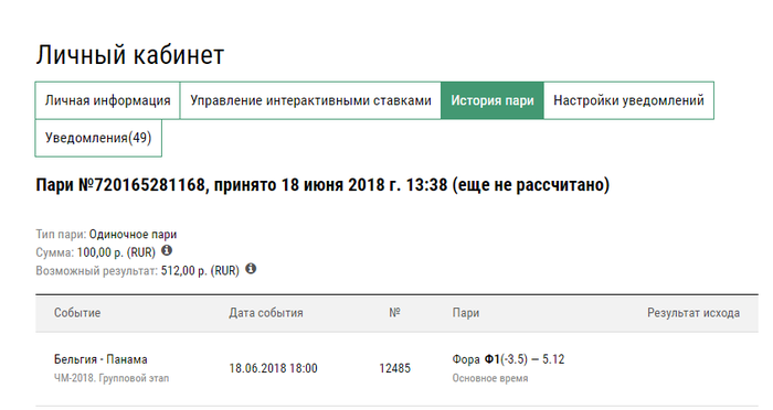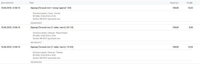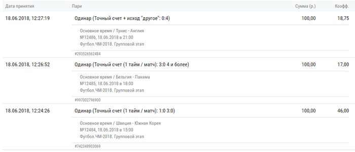 Каждый участник может делать ставку на каждый матч игрового дня, к которому он допущен. При этом на один матч можно сделать не больше одной ставки.