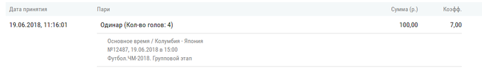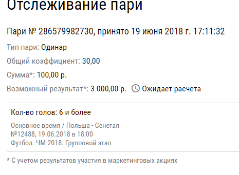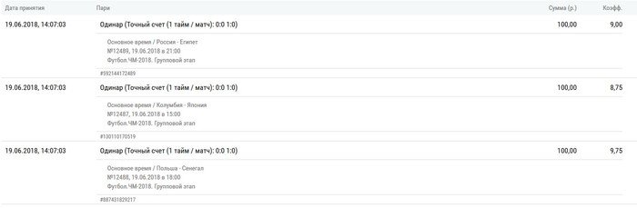 Каждый участник может делать ставку на каждый матч игрового дня, к которому он допущен. При этом на один матч можно сделать не больше одной ставки.
