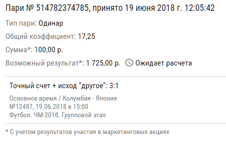 Суть конкурса довольно проста: до начала выбранного матча чемпионата мира участники делают реальную ставку на этот матч и оставляют скриншот этой ставки в комментариях к посту текущего игрового дня. По завершении игрового дня победителем признается участник, сделавший выигрышную ставку с самым высоким коэффициентом.