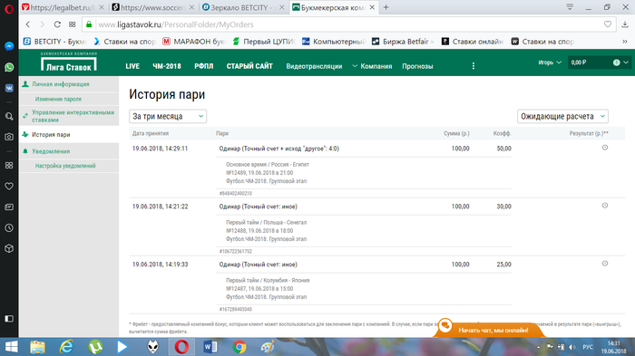 Конкурс «Горячий мундиаль с Лигой Ставок»: 6 игровой день. Выиграй 10 000 рублей