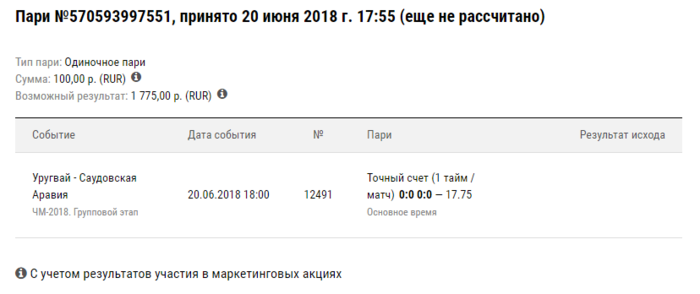 Суть конкурса довольно проста: до начала выбранного матча чемпионата мира участники делают реальную ставку на этот матч и оставляют скриншот этой ставки в комментариях к посту текущего игрового дня. По завершении игрового дня победителем признается участник, сделавший выигрышную ставку с самым высоким коэффициентом.