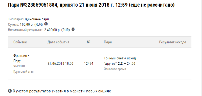 Суть конкурса довольно проста: до начала выбранного матча чемпионата мира участники делают реальную ставку на этот матч и оставляют скриншот этой ставки в комментариях к посту текущего игрового дня. По завершении игрового дня победителем признается участник, сделавший выигрышную ставку с самым высоким коэффициентом.