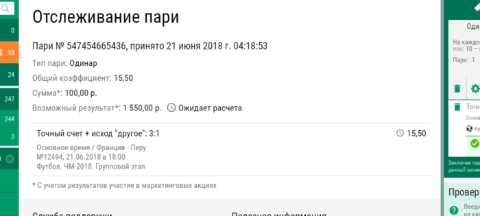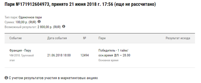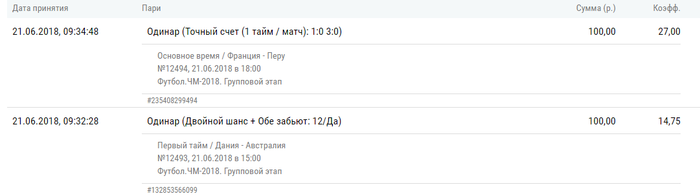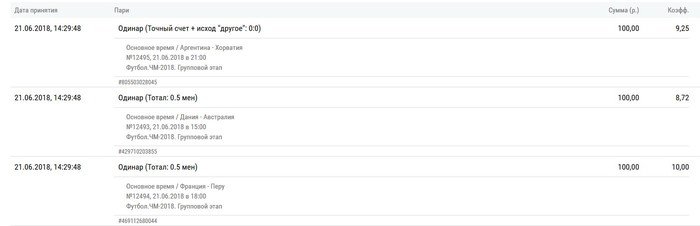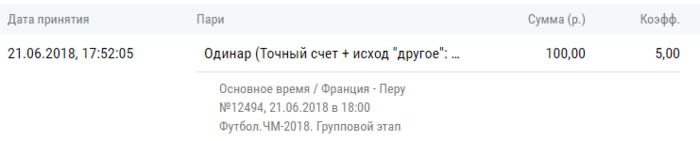 Каждый участник может делать ставку на каждый матч игрового дня, к которому он допущен. При этом на один матч можно сделать не больше одной ставки.