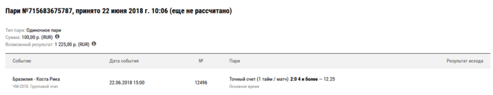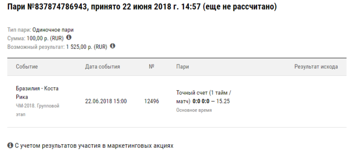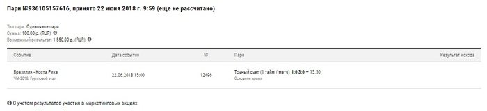 Суть конкурса довольно проста: до начала выбранного матча чемпионата мира участники делают реальную ставку на этот матч и оставляют скриншот этой ставки в комментариях к посту текущего игрового дня. По завершении игрового дня победителем признается участник, сделавший выигрышную ставку с самым высоким коэффициентом.
