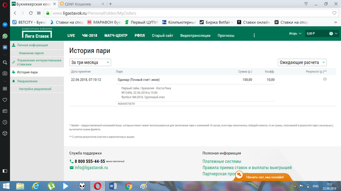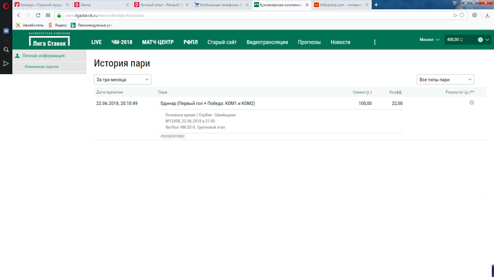 На любой матч игрового дня необходимо сделать реальную ставку на сайте www.ligastavok.ru. Скриншот этой ставки нужно разместить в комментариях к конкурсному посту игрового дня не позднее чем через час после заключения пари. Скриншот может быть принят исключительно до начала матча, на который сделана ставка.