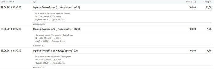 Каждый участник может делать ставку на каждый матч игрового дня, к которому он допущен. При этом на один матч можно сделать не больше одной ставки.