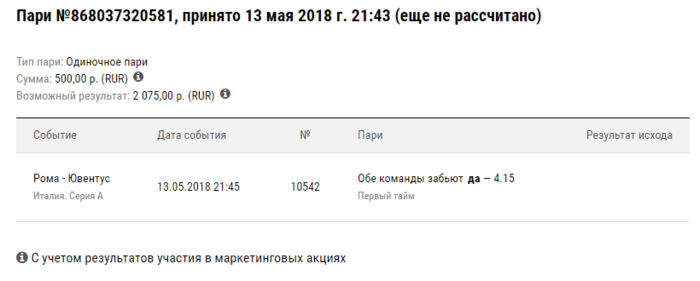 Сумма конкурсной ставки — от 500 рублей или выше, минимальный коэффициент — 1.6. Все конкурсные ставки должны быть сделаны только по линии «прематч».