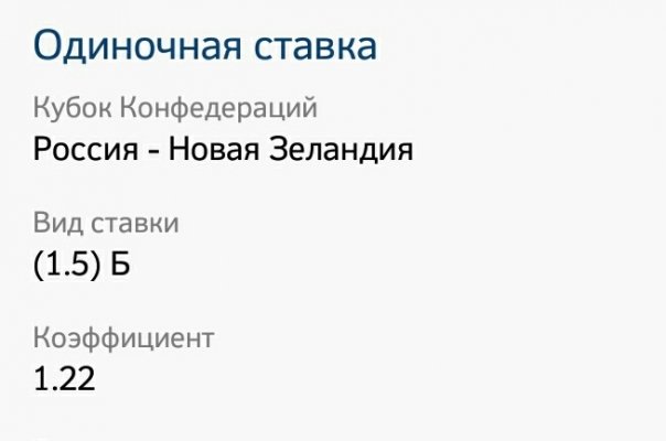 Россия – Новая Зеландия. П1 за 1.34 в БК «Олимп» (Шаг 1).