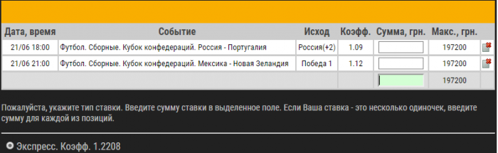 Ставить можно только на матчи Кубка конфедераций! На какие именно, выбираете только вы.