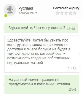 Конструктор позволял создать альтернативный матч «МЮ» — «МС», где победителем выйдет тот, кто выиграл свой реальный матч с большей разницей мячей. Так же можно было зарядить на тоталы, индивидуальные тоталы, форы — в общем, вы поняли. Однако теперь эта функция не доступна. Вернётся она или нет — в службе поддержки не смогли дать чёткого ответа.