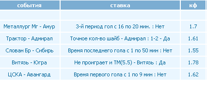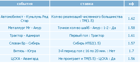 Ну и центральным матчем дня будет противостояние столичных Армейцев и Омских Ястребов. Вот в этой паре действительно сложно определить фаворита, хоть и букмекеры с ним определились, но я с их выбором не согласен. Обе команды отлично начали старт сезона. Но у Авангарда скажем честно результаты лучше, 4 победы, хоть и 2 после овертайма. У ЦСКА же поражение на старте от СКА и три победы, 2 из них так же после овертайма. В пользу армейцев говорит лишь то, что победы были одержаны в выездных играх, но и это в свою очередь соответственно накладывает некий отпечаток нагрузки на команду. У Авангарда же напротив были домашние игры, и эта первая выездная игра. Так же в пользу Армейцев говорят и личные встречи, но все это осталось в прошлом сезоне. Так что в этой встрече в результат я не решаюсь лезть. Но вот понимание того, что будет очень серьезная борьба у меня есть! И обе команды постараются по максимуму выложиться + ко всему принципиальность очного противостояния. Думаю в этой игре мы не увидим большого обилия голов. Еще хорошим вариантом мне видится ставка на тотал голов в большинстве больше 1.5.