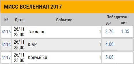Сегодня будет необычный пост. У нас пятница, Black Friday, традиция скидок, которая пришла к нам из-за океана. Хайп вокруг этой пятницы принес мне хорошее настроение и я решил поделиться им с вами. Сегодня будет необычный пост, я предлагаю рассмотреть ставки на конкурс красоты «Мисс Вселенная», который пройдет уже в это воскресенье. Букмекеры уже определились со своими фаворитами, стоит отметить, что таких разночтений в линии я не видел ни по каким другим событиям. Оно и понятно, прогнозировать конкурс красоты самое сложное занятие, которое только можно придумать, хотя б потому что все очень субъективно, но попробуем разобраться.