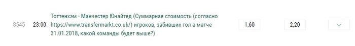 Тоттенхэм - МЮ. Суммарная стоимость игроков какой команды будет выше, которые забьют гол. По данным transfermarket
