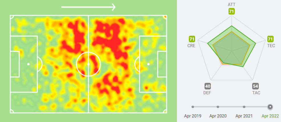 Мхитарян провёл в Серии А 2297 минут (только четыре игрока сыграли больше). Генрих второй в команде по голевым (6) и ожидаемым ассистам. Кроме того, Мхитарян второй в «Роме» по xGChain (суммарный xG владений, в которых игрок принимал участие). Доказательство того, что Мхитарян — важный игрок в системе Моуринью, на тепловой карте и в его показателях.