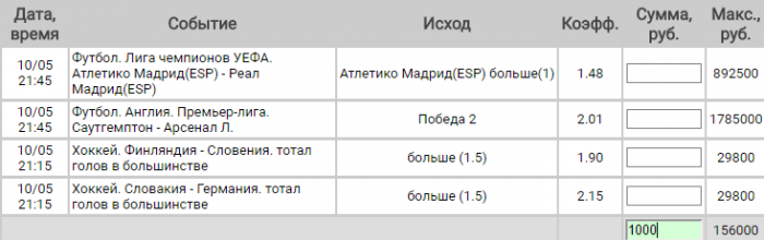 2) Атлетико Мадрид не проиграет и ТБ 2.5 - 2.85;