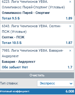 Ну и, конечно, собрался еще такой экспрессик по Лиге Чемпионов: