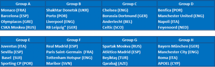 Жеребьевка группового этапа Лиги Чемпионов