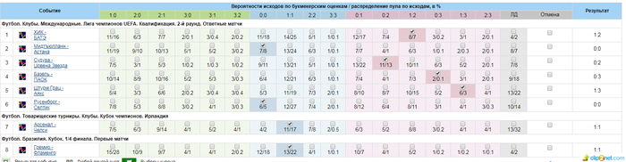 на общак поставлю 4 варианта,всего80 евроцентов.отбор по массовости мнения +мои корректировки,от каждого по 1 рез-тату в лоб😜 на матч+2дополн можно,время приема до 19.00,сам ставлю более 100вар
