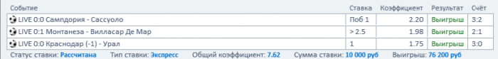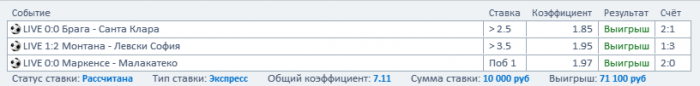 — Точно сказать не могу. Летом ставлю меньше, так как в Европе каникулы, а на «товарняки» и матчи сборных не ставлю экспрессы вообще. Могу сказать, что за январь и начало февраля у меня было 5 больших экспрессов, и в двух из них не зашло только по одному событию. Было обидно.