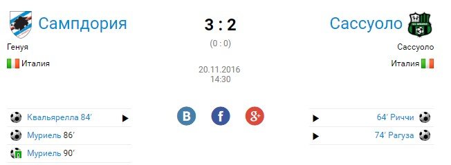 испанцы забивают на 5 добавленной минуте, а сампдория выигрывает за 6 мин до конца