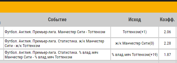 Итак, тяга к поимке поражения «Сити» лишь увеличивается с каждым туром. Команда Гвардиолы уже долгое время ходит рядом с потерей очков, но усердно отскакивает из матча в матч, отчего даже появилась вера в «Суонси». Но валлийцы в минувшем туре не оказали сопротивления «горожанам» и те победили крупно. На очереди игра с «Тоттенхэмом» и изначально не хотел смотреть в сторону победы гостей, обратив внимание только на выбор в сторону голов от команды Почеттино. Однако, не ждал, что линия будет такая – предполагал, что гости будут стоить до 4, а они оцениваются почти в 6. При таких котировках, конечно, не играть против «Сити» уже невозможно.