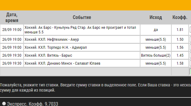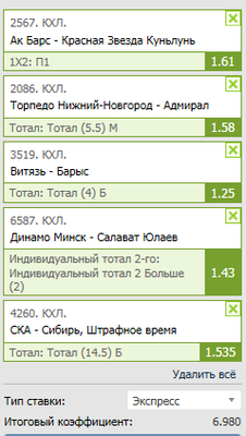Где "Барыс" там ТБ,это правило дало осечку в предыдущем матче с "Динамо",но это не смутило букмекеров и на данный матч более-менее играбельный кэф начинается с ТБ 5."Витязь" уже 3 матча не набирает очков и после сегодняшнего игрового дня может покинуть кубковую восьмёрку( "Сочи" и "Слован" играют в данный момент)."Барыс" осел на 7-м месте Востока и как минимум один тур никто его оттуда не подвинет."Барыс" за последние 7 встреч в Подольске в основное время проиграл лишь раз и в этом матче команда является фаворитом для меня.Хотелось бы обЪяснить почему я не играю чистую победу гостей,возможно эта информация будет кому то полезной.Итак,как я уже написал у "Барыса" всего одно поражение в Подольске за последние 7 матчей,но в трёх из этих встреч игрался овертайм,прибавим к этому то что в 9-ти матчах этого сезона с участием "Барыса" в 5-ти командам не хватило основного времени для выявления победителя.Любителям ставок на ничьи на заметку.Возможно при таких раскладах нужно играть комбо х+тотал,но самый минимальный вариант выглядит вот так Команда 2, результат + тотал 2Х и ТБ 4.5 - Да за 2.55 ,вообщем в этом направлении ещё буду думать,а пока предлагаю следующий прогноз: