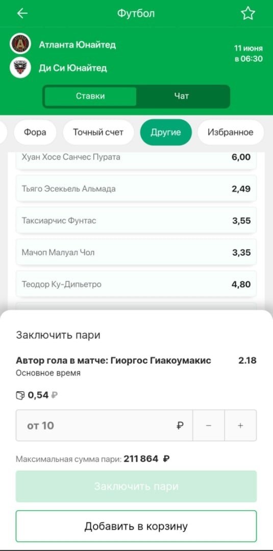 За день до матча зарядить на гол конкретного футболиста дают BetBoom, «Мелбет» и «Лига Ставок», причём последние с сумасшедшими максимумами — на кэф 2.18 можно зарядить более 200 тысяч.