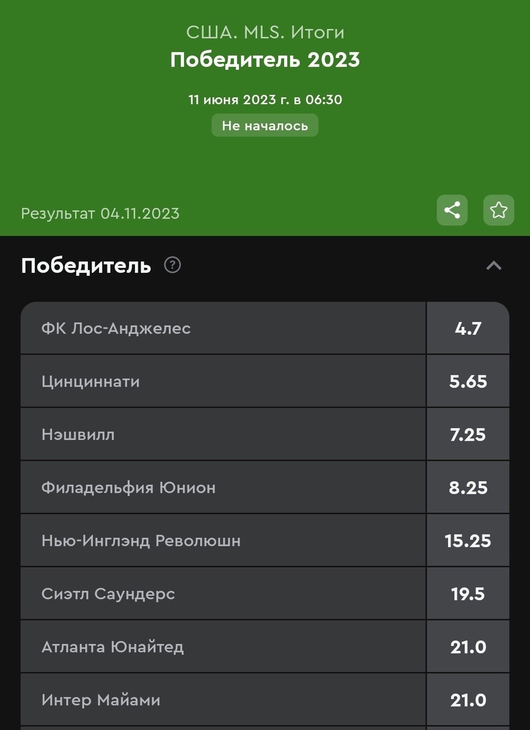 Что действительно удивительно, долгосрочную линию на победителя MLS можно найти только в «Олимпе». «Бетсити», например, расписала шведский Аллсвенскан, а вот чемпионат США пока обошла стороной.