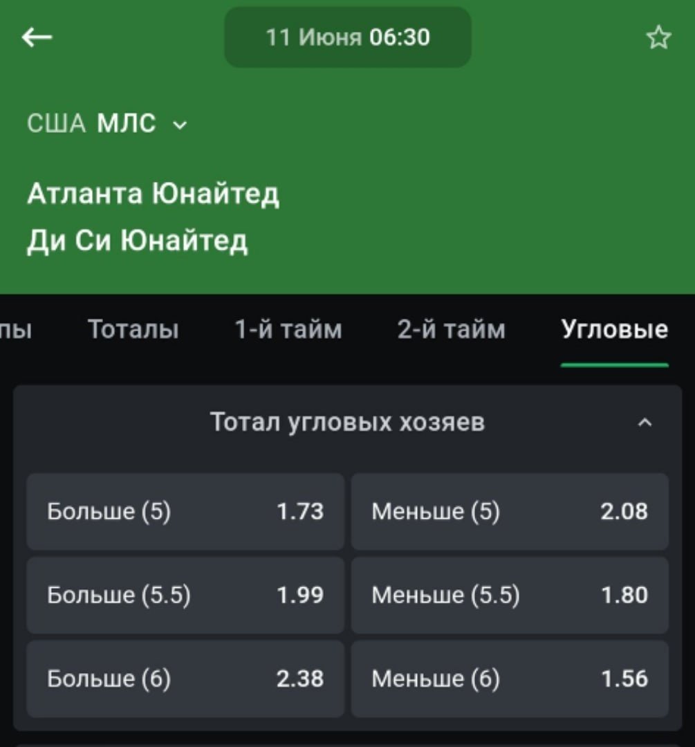 Угловые на матчи чемпионата США расписывает Pinnacle, поэтому неудивительно, что и российские букмекеры дают ставить на корнеры: за сутки линия на статистику есть в 5 конторах, но ближе к матчу их количество заметно вырастает.