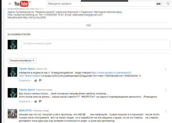 Вот вы прицепились к самому персонажу Сулейманову! А почему бы не расширить взгляды - и увидеть немого больше! - что здесь была не реклама этого "суперпупер каппера" - а непосредственно реклама самой игровой индустрии в России. Т. е рекламы непосредственно ставок на спорт и БК!Так как Бк сейчас легализовались,платят налоги, являются спонсорами большинства спортивных клубов , телеканалов и тематических передач про спорт!Раньше это была реклама водки,но рекламировалась вода с одноименным названием😄 - а реклама это их хлеб!!! И вы упустили фразу Гордона, когда он говорил, что уже связывался с рекламой ставок на спорт(это он говорит в передаче), так что эта кухня ему знакома. Сейчас большинство людей ставит в офшорных конторах, так как не хотят платить налоги, но как Вы многие знаете - недолго тот момент,когда хотят запретить перевод с каких бы то ни было счетов средств - на счета офшорных бк!-вот тут у всех и не останется выбора.