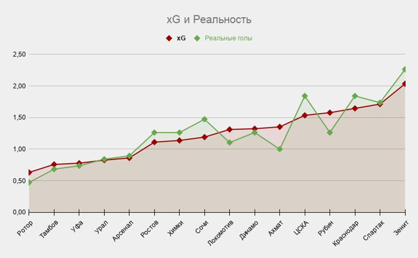 Различия в статистике xG и реально забитых мячах могут иметь значение на дистанции. Если команда больше забивает, чем создаёт, то рано или поздно её результативность упадёт, и наоборот.