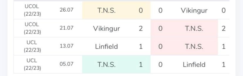 На скрине можно увидеть все фильтры выборки: только прошлый сезон и только встречи в еврокубках. У «Нью-Сейнтса» таких игр было 4: сначала в двухматчевом противостоянии он проиграл «Линфилду», а затем уступил исландскому «Викингуру». Ну и самое важное, что за 4 игры футболисты «Нью-Сейнтса» Клуб на скринах носит английское название «T.N.S». забили всего 1 гол.