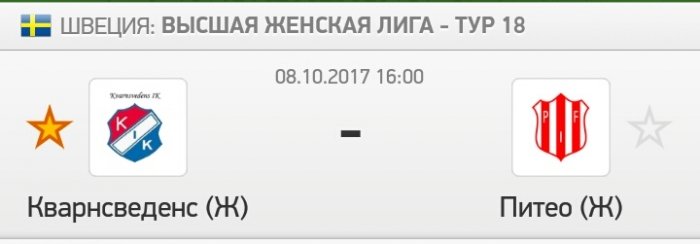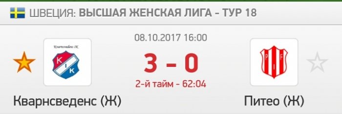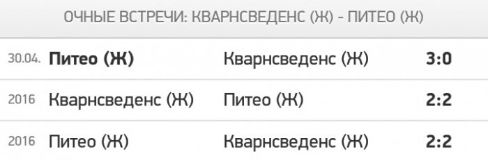 Питео (Ж) - Кварнсведенс (Ж) | ТБ2.5 | 1.53 | 3:0 | 100 | +53 |