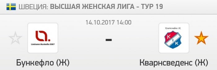 Кварнсведенс (Ж) - Бункефло (Ж) | ТБ2.5 | 1.48 | 5:0 | 100 | +48 |