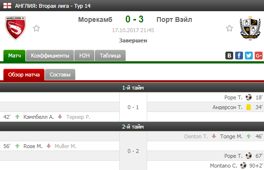 Порт Вэйл - Ноттс Каунти | Гол в обоих таймах | 1.70 | 0:1 (0:0) | 100 | -100 |