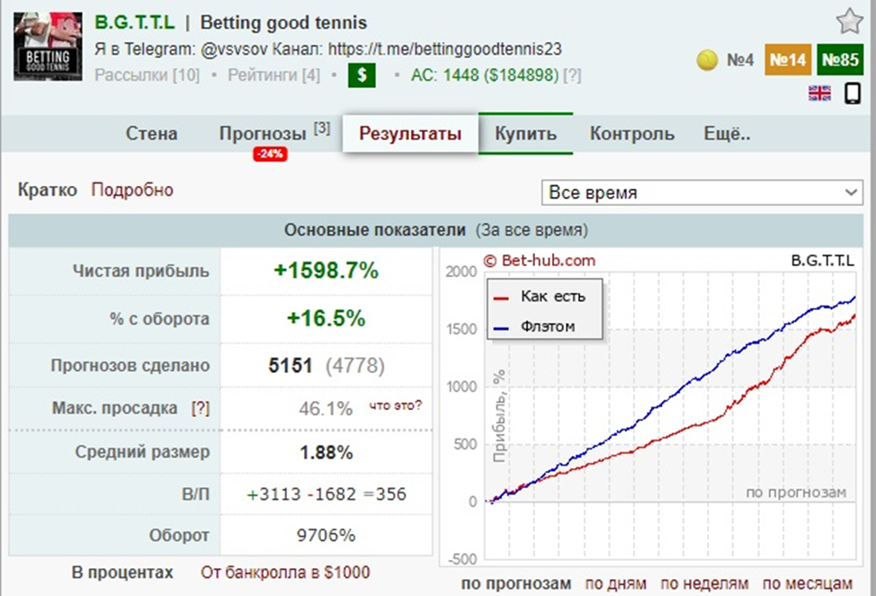 Сейчас я продолжаю вести рассылку на Bet-Hub с прогнозами на биг-маркеты, но продаж практически нет. И дело здесь не только в показателях, но и в том, что явно упала и платёжеспособность покупателей. Фактически 1000 долларов в месяц для каппера на этом ресурсе — предел.