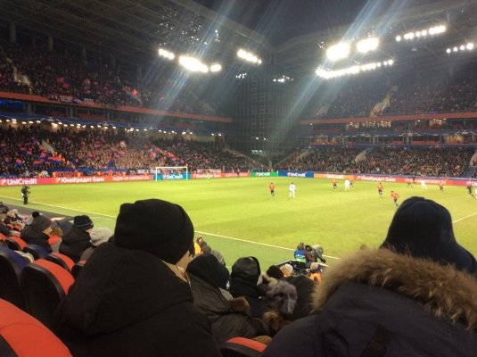 Места у нас были просто отличные. Болельщики ЦСКА — лучшие в России. А вот за Байер болели туристы-бабушки и дедушки. Футбол нам понравился! То, что надо. Покричали, побухали да и ставку не проиграли — у нас был возврат, так как ставили мы на 2 больше.