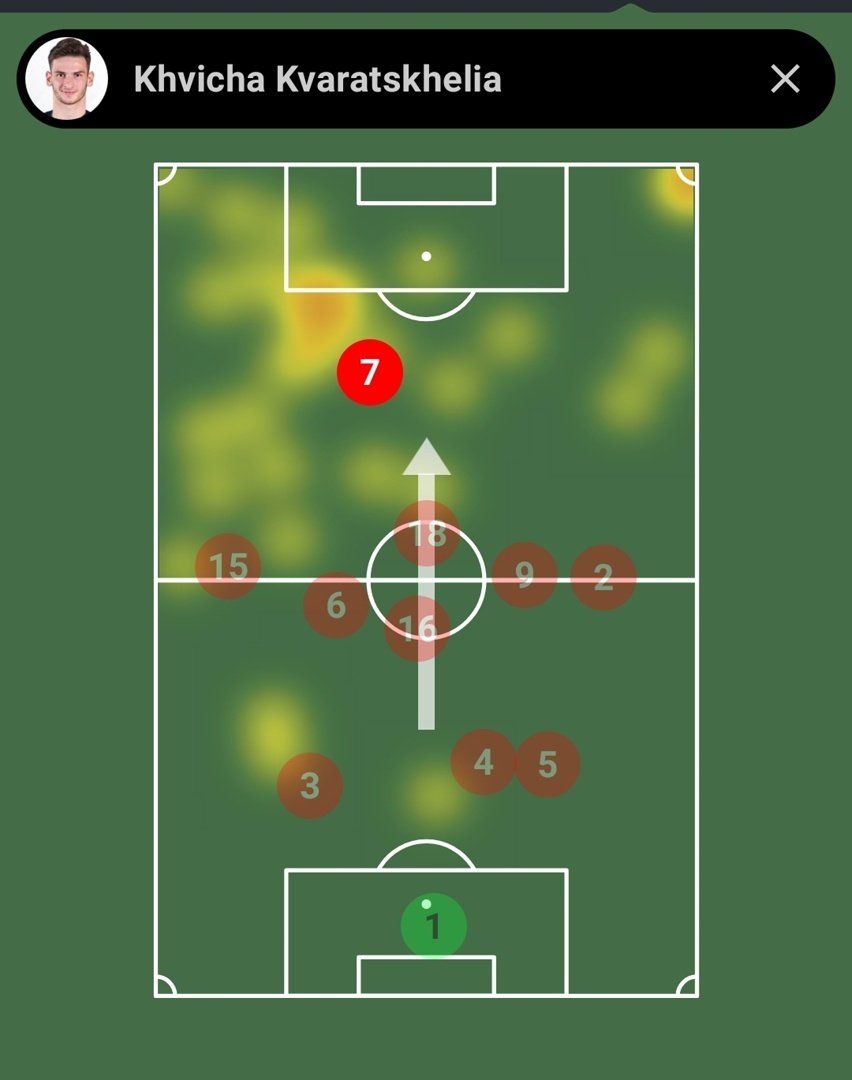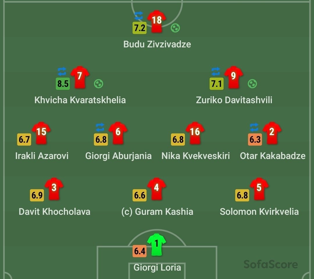 Несмотря на то, что Кварацхелия последние полгода провёл в скромном чемпионате Грузии, он нисколько не растерял форму. У Хвичи 2+2 в двух матчах Лиги наций, в среднем по пять ударов по воротам за игру и 83% точности передач.