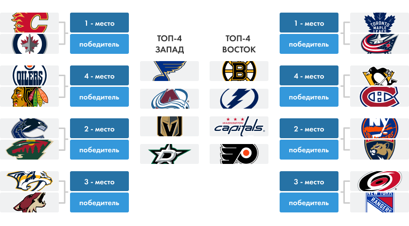 далее восемь команд, пробившихся через плей-офф, и восьмёрка сильнейших играют обычные матчи на выбывание, чтобы определить обладателя Кубка Стэнли-2020.