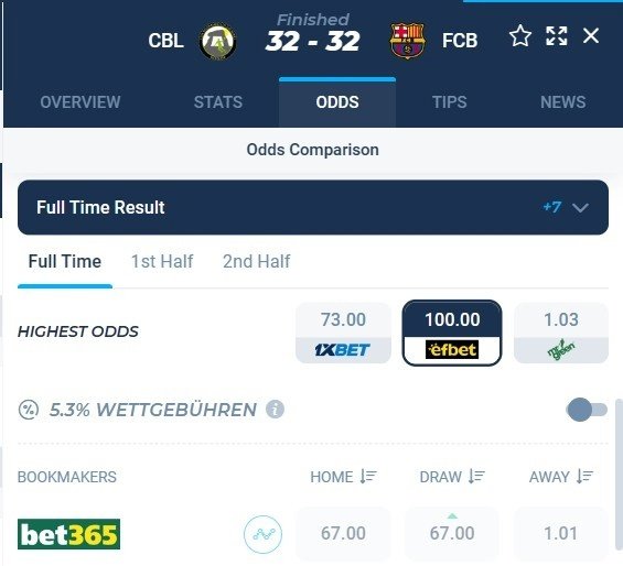 Высокие коэффициенты на потерю очков каталонцами вполне объяснимы — действующий чемпион за последние 5 сезонов оступился в чемпионате лишь трижды: 2 ничьи и 1 техническое поражение.