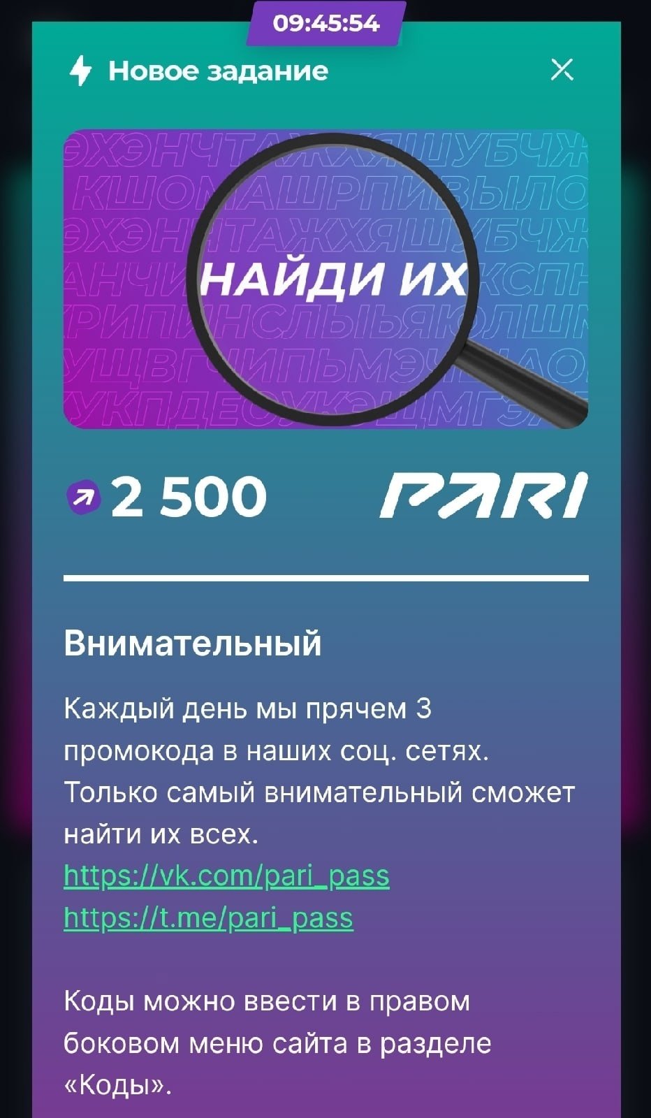 2. В социальных сетях. Подпишись, найди промокоды и так далее. Интересный интерактив, чтобы прокачать свои каналы в Телеграме и ВКонтакте.