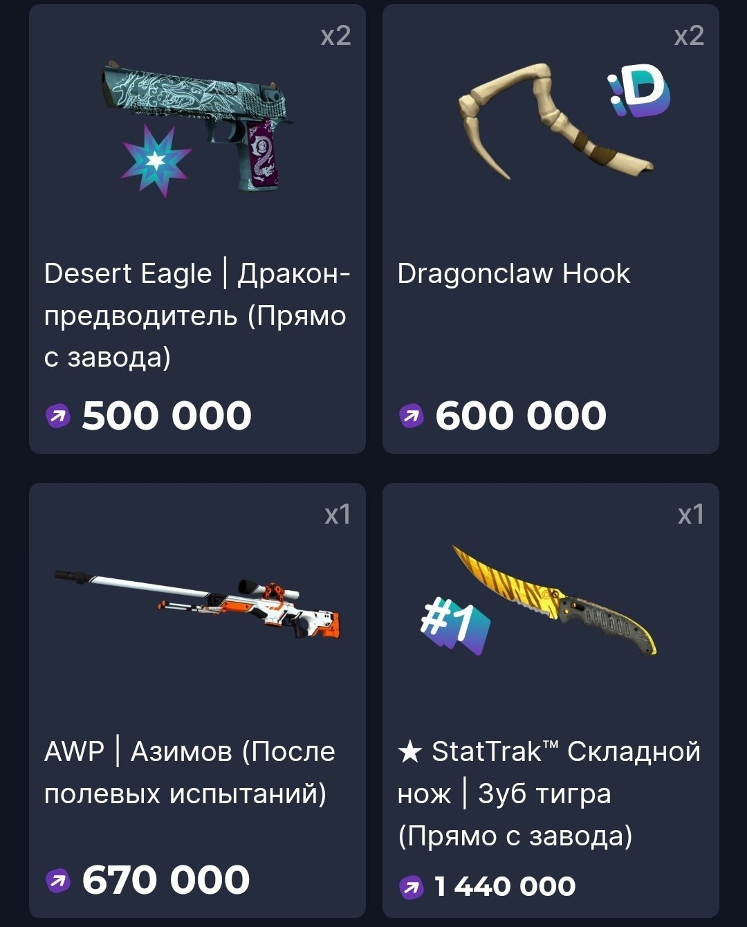 Самый дорогостоящий приз — нож из CS, который, если верить торговой площадке Steam, стоит около 400 долларов, то есть чуть больше 30 тысяч рублей.