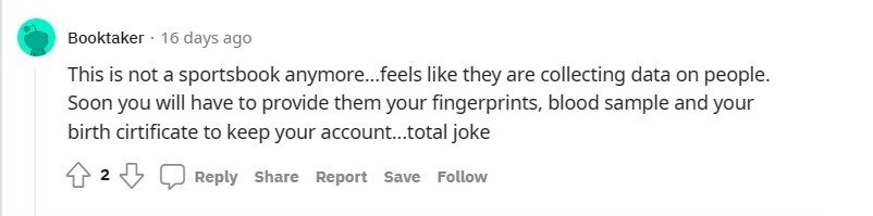 «Это уже не просто букмекерская контора. Кажется, они собирают данные о пользователях. Скоро вам придётся предоставить им свои отпечатки пальцев, образцы крови и семейное древо, чтобы сохранить свой счёт».
