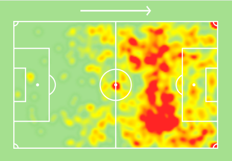 По тепловой карте видна любовь аргентинца к центру и правому краю атаки. Значит, роль инвертированного вингера в добром десятке матчей — уже решённый вопрос.