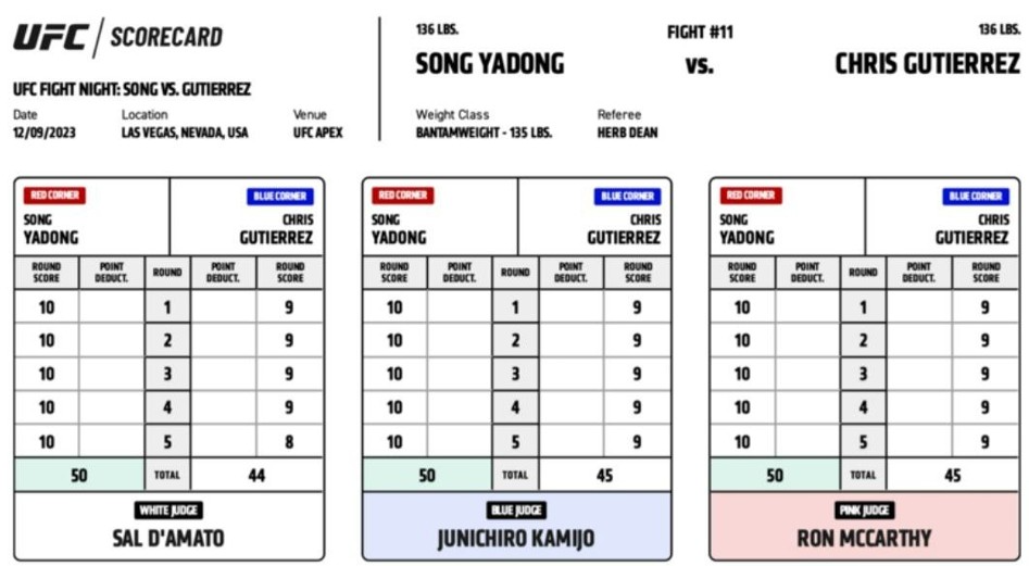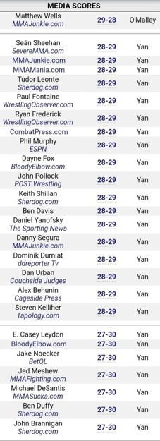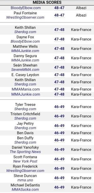 Судейские записки есть на сайте UFС и Ufcstats. На сайте Mmadecisions есть оценки не только судей UFC, но и экспертов из разных СМИ.