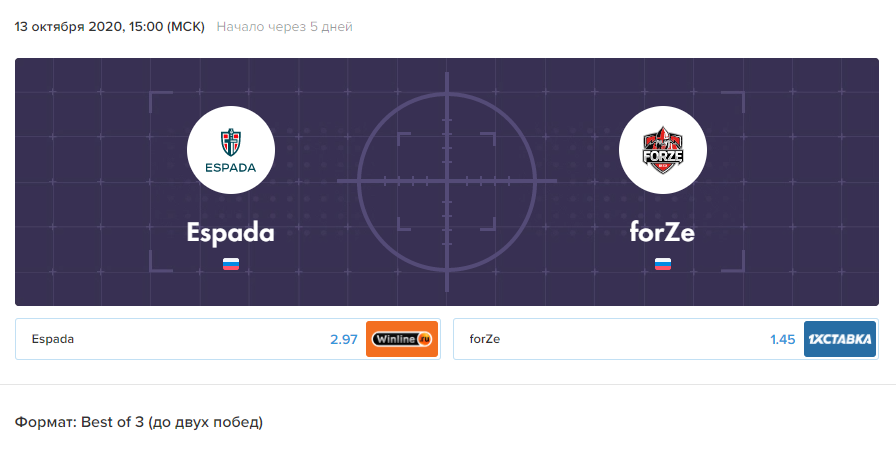 На первом экране страницы матча – цветная подложка с названием команд и лучшими коэффициентами на основные исходы среди букмекеров-партнёров Legalbet. Ниже указан формат встречи, это обязательное поле для каждого матча: например, Best of 1 – одна карта, Best of 3 – для победы нужно взять две карты из трёх возможных.